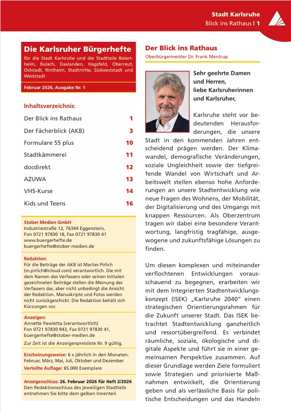 In 11 Stadtteilen erscheint das Bürgerheft in 10 Ausgaben (Innenstadt West und Altstadt geben ein gemeinsames Heft heraus) der Stober Medien GmbH in gleichem Layout. Es setzt sich zusammen aus dem allgemeinen Teil (roter Mantel) und dem stadtteilspezifischen Teil (gelber Innenteil)